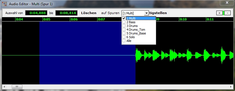 | "Audio Editor" Mit einem Klick mit der Rechten Maustaste auf Knopf "R" - Spur bearbeitengelangt man zum Audio Editor |