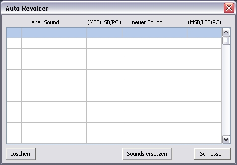 | Auto Revoicer: (Sound Wechsel Automat) Was macht eigentlich Auto-Revoicer? Im Laufe der Zeit haben wir festgestellt, dass man häufig bis immer, die selben Instrumente bzw. immer bestimmte Sound Variationen eines Soundmodules benutzt. D.H. Beim einladen eines neu erworbenen Standart GM- bzw. XG-Midifiles, klickt man sich jedes mal aufs neue mühsam durch die Liste der zur verfügung stehenden Sounds und verwendet doch immer wieder die Selben Instrumente. Genau hier liegt die Funktion dieses Tools. Funktionsprinzip: Man fügt die gewünschte Soundvariation in eine Liste ein. Diese Liste umfast dann im optimalen Falle max. 127 GM-Grundsounds. Lädt man nun ein Standart GM- bzw. ein XG-File ein, dann werden bei Klick auf "Sounds ersetzten" im Auto-Revoicer die Standart GM- bzw. XG-Sounds durch die in der Liste gespeicherten Sound-Variationen Vollautomatisch ersetzt. |