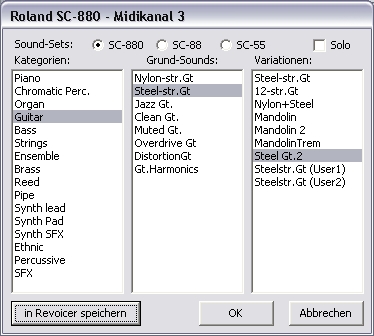 | Mit Klick auf das Feld "in Revoicer speichern" trägt sich der Grundsound (Steel-Str.Gt) auf