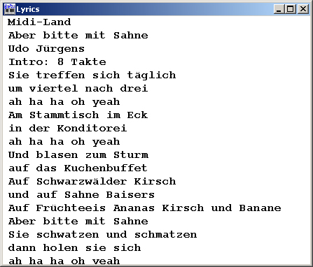 Wenn sich im Midifile Lyrics befinden, kann man diese mit Klick auf den Menüknopf "