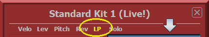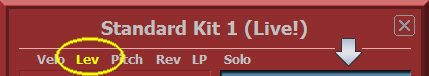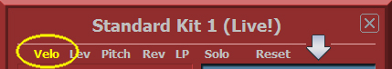 Dabei werden die Velocity-Werte Angepasst, und somit verändert sich das Verhältnis zu den anderen Drums Instrumenten. |