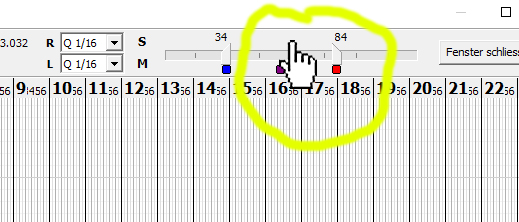 Beim Programmstart erscheint eine Fehlermeldung. Haben sie denn auch die aktuellste Programmversion? Klicken Sie im Programm auf "Hilfe - Nach Updates suchen" Alternativ auf unserer Webseite (www.midiland.de) unter Software die VOLLVersion herunterladen und installieren. RECHTS-Klick auf „Spur“ öffnet den Key-Editor: ![]() Mit gedrückt gehaltener „Strg“ (Ctrl) Taste und RECHTS-Klick auf einen der Mute Knöpfe kann die entsprechende Spur gelöscht werden: ![]() Klickt man im geöffneten Sounds Fenster auf „<|>“ springt der Song an die Stelle der ersten Note dieser Spur: ![]() Das gleicht Gilt auch wenn man einen Doppelklick über einer Spur im Display macht: ![]() Überfährt man im Key-Editor Fenster den Bereich der Velocity Einstellregler, dann kann man mit dem Scrollrad der Maus beide Einstellregler parallel nach oben und unten verschieben: ![]() Je weiter links man eine Taste im Key-Editor anklickt, desto leiser wird der Ton (Links= kleiner Velocity Wert, Rechts= großer Velocity Wert): ![]() Ein Klick auf „Controller“ öffnet die Übersicht ausgesuchter Controller ALLER Midikanäle: