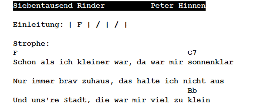 | PC Live Player (Sufflör) Format LSH-Format (LSH=Leadsheet) Midi-Format: General Midi-Format. Läuft auf ALLEN Geräten (die das GM-Format unterstützen) Hier werden vom Midifile auf 128 GM Standard Sounds zugegriffen. Text-Format: Das besondere beim PC Live Player ist die Darstellung des Textes. Dieser ist Zeilenweise und für große Displays konzipiert (breite Zeilen). Infos zum PC Live Player hier |