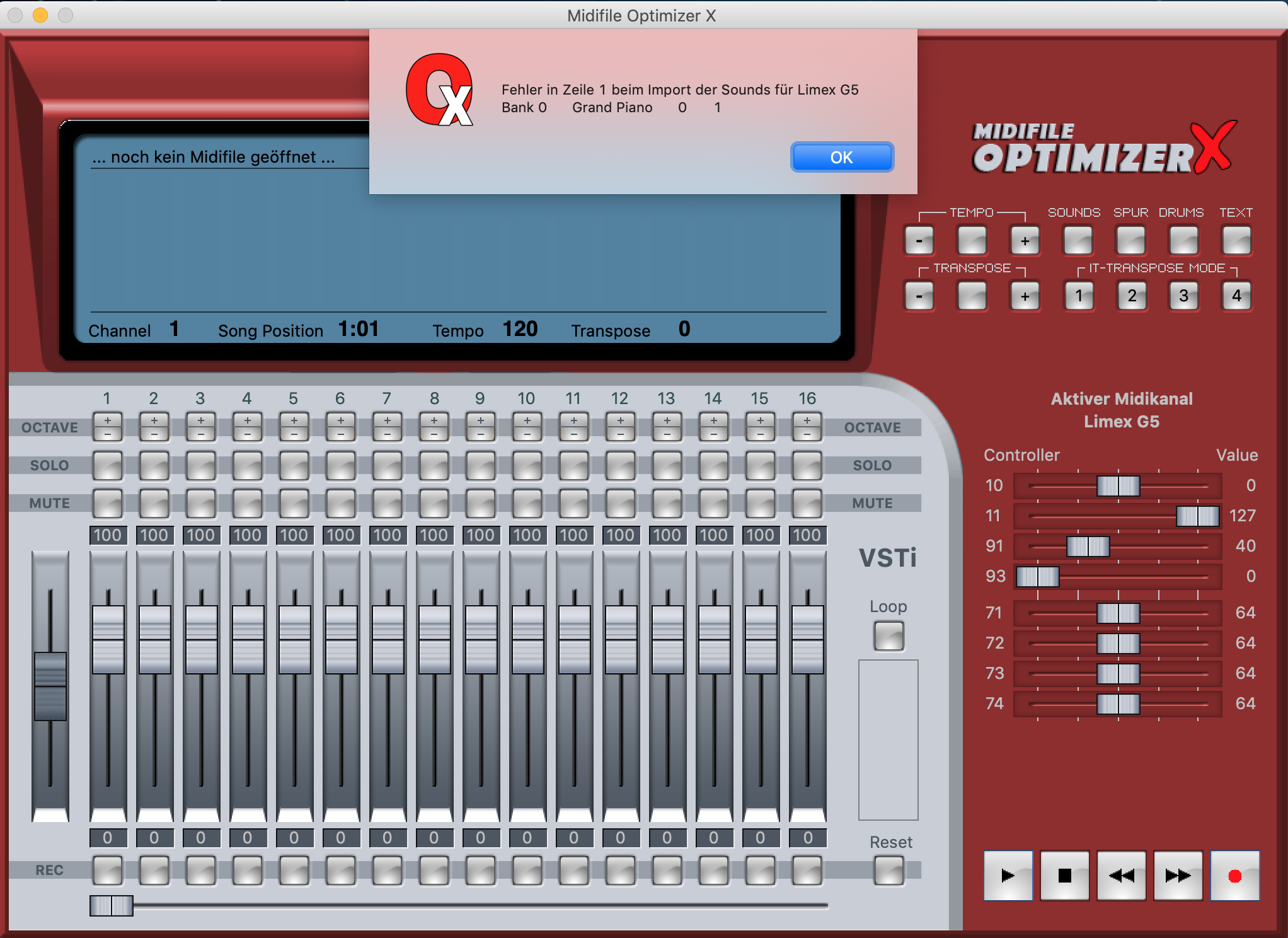 Beim Öffnen eines Midi mit Limex G5 Soundanbindung erscheint der Fehler wie im Bild: